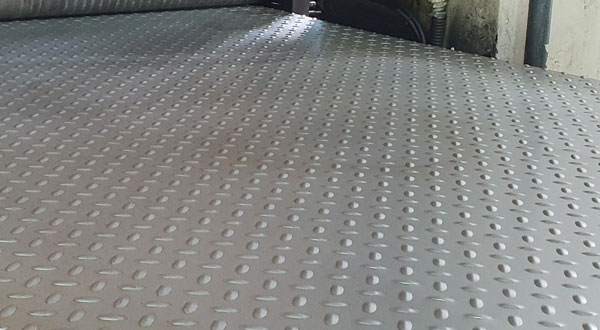 재료판에 체크무늬 형태로 압력을 가해 판재보다 높게 돌출(embossing)시켜 지그재그 형태로 가공